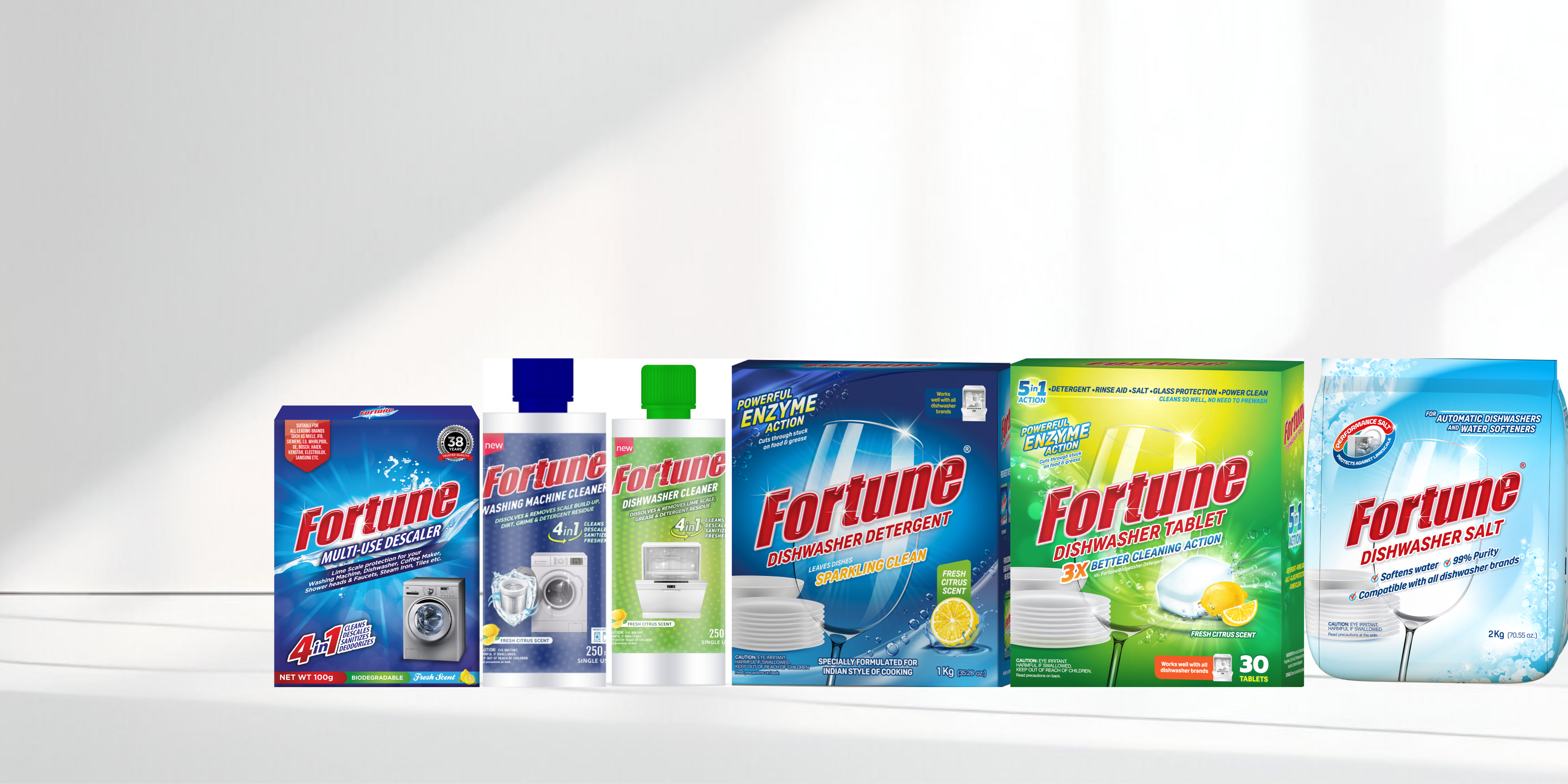 Fortune Dishwasher Products are specially designed for automatic dishwashers, using powerful enzymes to tackle tough stains from tea, coffee, dried food, and grease. Designed for the demands of Indian cooking, it delivers outstanding cleaning and is compatible with all dishwasher models in India. Many users report Fortune outperforms imported brands, offering both quality and value.